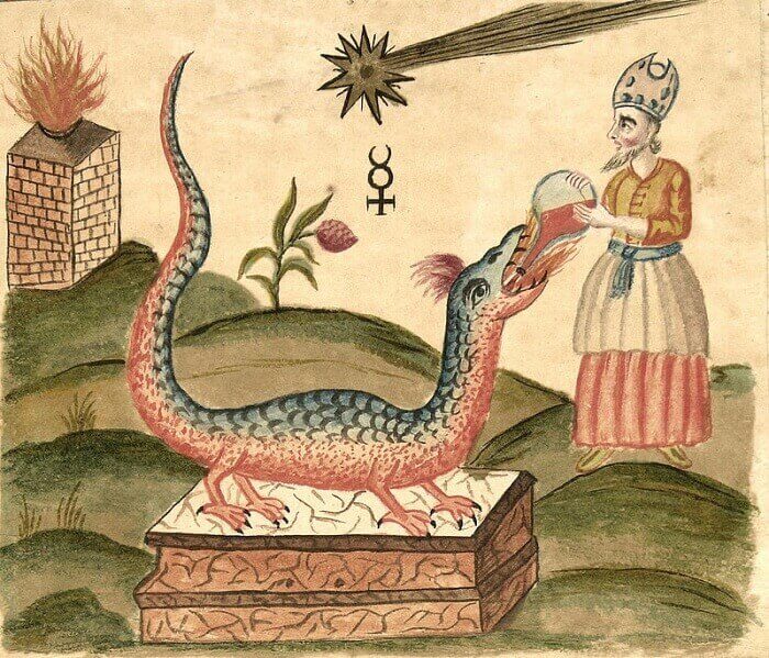 Alchemical symbolism is more than a reflection of chemical processes. For example, one of the main symbols of alchemy – a dragon that swallowed its tale – is an embodiment of the multiple processes of birth and death. Symbolical language of sacred texts is connected not only to technologies but also to all structures of existence, the balance of which could lead to success in alchemical transformations.